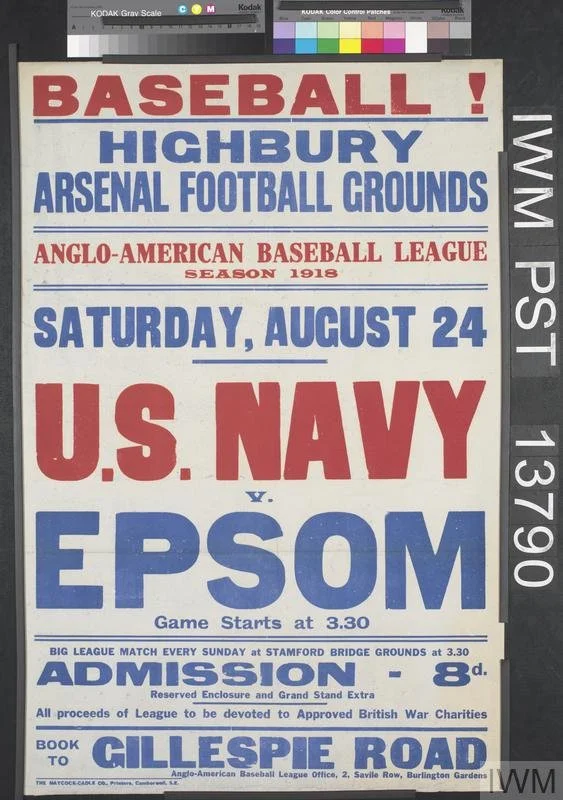 ANGLO-AMERICAN BASEBALL LEAGUE. SUNDAY, May 25th, EPSOM v. U.S. NAVY. Game starts 3.30 p.m. STAMFORD BRIDGE GROUNDS, WALHAM GREEN.[47]